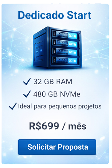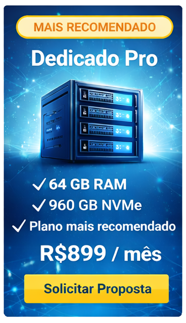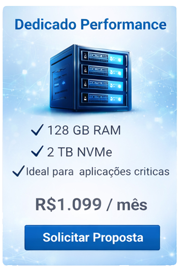 Hospede ERP, sistemas corporativos, e-commerce e aplicações críticas em servidores dedicados com infraestrutura em datacenter em São Paulo.